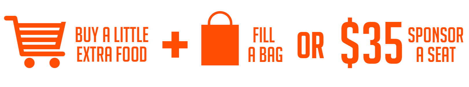 Monetary donations are welcome – and in fact your dollar goes further since AIO can purchase food through partners at a competitive price. Individuals can fill one theater seat with a bag of food or sponsor a seat at $35. Your $35 monetary donation can buy up to $125 worth of food. Those interested in sponsoring a seat through a financial donation can donate by clicking on the link above.